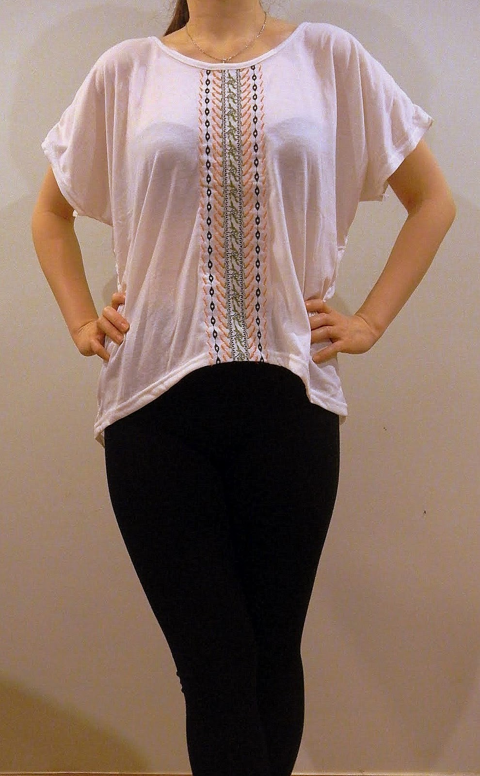 Description: Comfortable t-shirt top with simple tribal motive. Sutitable for a casual day out with your favorite pair of shorts, jeans or even leggings.